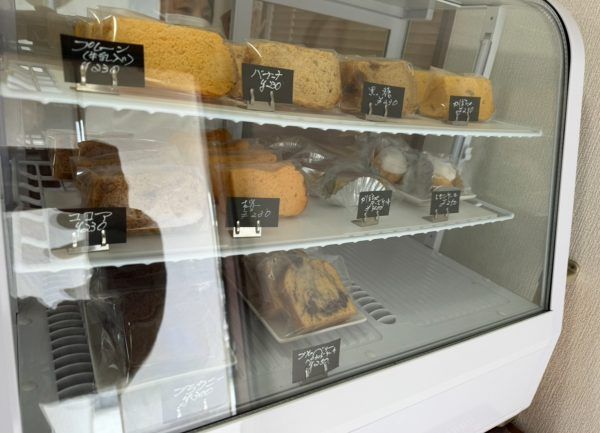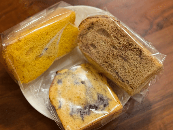 手作りのシフォンケーキやパウンドケーキが並び、その中でも特にパウンドケーキの種類の豊富さが目を引きました。