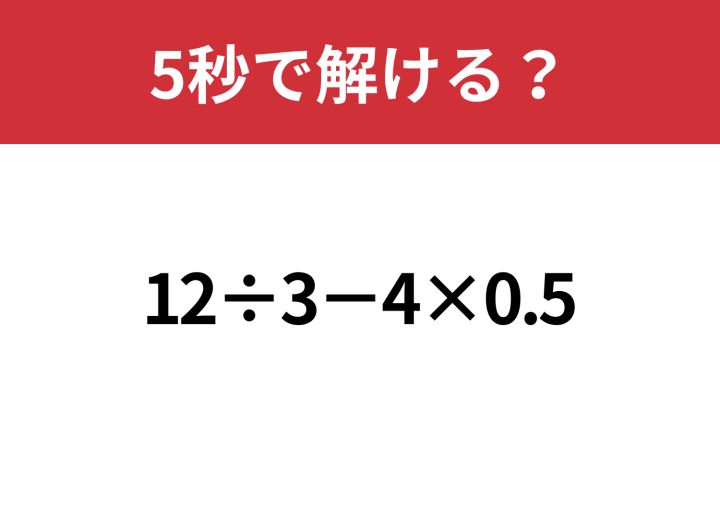 大人なら正解できますよね?「12÷3−4×0.5」5秒で解ける?