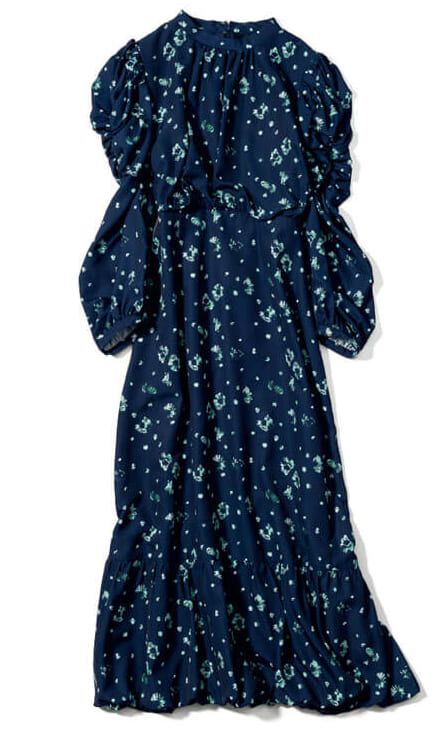 シックなネイビーに小花柄を浮かべたお育ち良さげなクラシカルワンピ