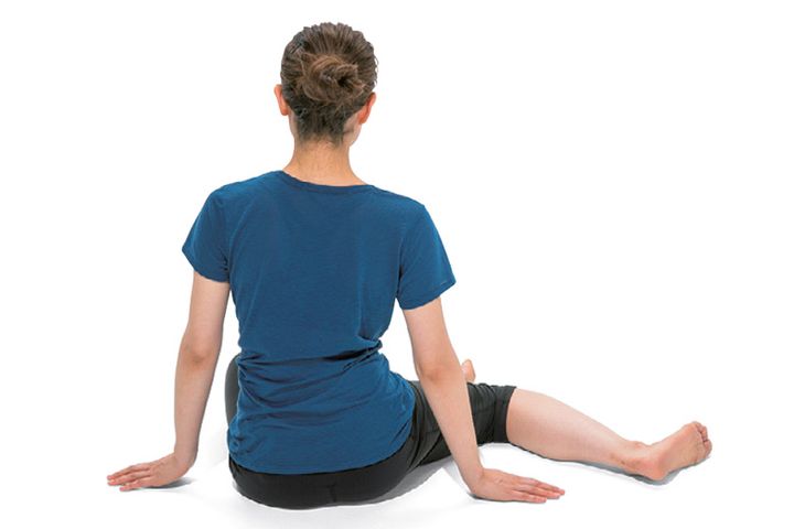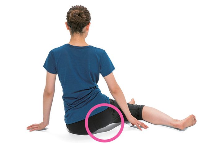背すじを伸ばすことでお尻がしっかり落ち、股関節にかかわる筋肉をほぐすことができます。猫背にならないように注意しましょう。