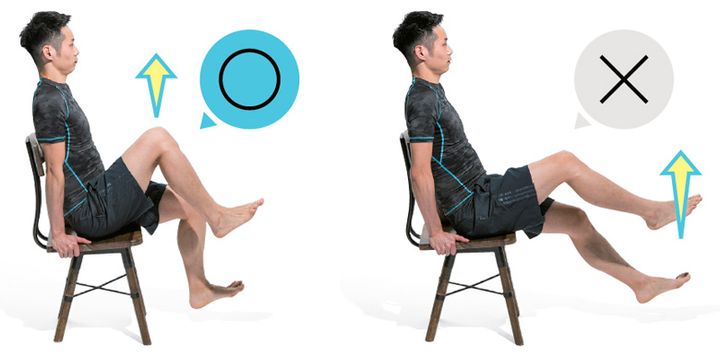 ヒザの曲げ伸ばし動作で股関節まわりの筋肉を動かすことが狙いのため、ヒザはできるだけ伸ばすように心がけましょう。