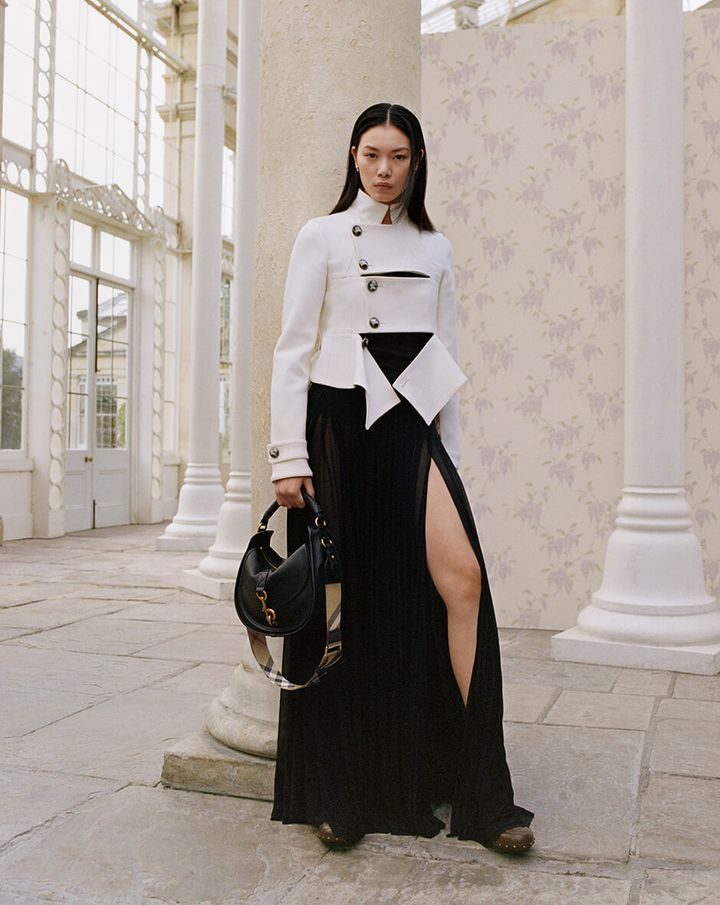 メゾンのアイコンが、コートの他、ウォッシュドシルクやコットン、三層ウールといった素材のライトウェイトジャケット、ケープ、ドレス、トップスとして生まれ変わり、新シーズンのスタイルに新たな息吹をもたらす。