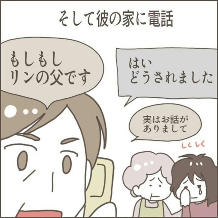 婚約破棄の旨を伝えたところ、相手側の横柄な態度にあ然としてしまいました…。結局、電話を切るまで、マサヒロの父の偉そうな物言いは変わらず、リンさんの両親はますます怒りに火がつきます。