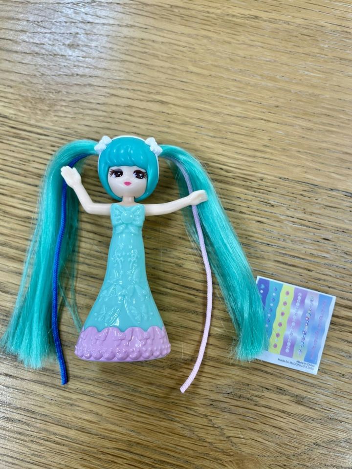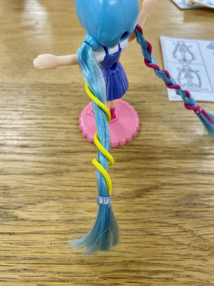 ジュエリーがテーマ。ピンクと黄色の髪の毛にはブルーのひもが付いており、ポニーテールや三つ編みなどさまざまなヘアアレンジが楽しめます。