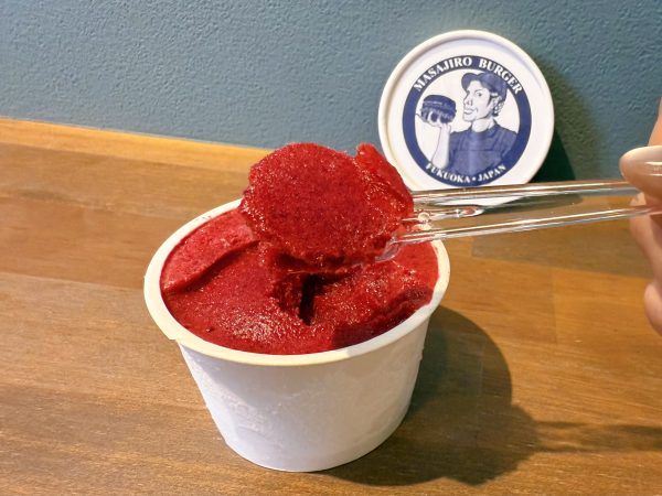 ほんのり甘酸っぱいカシスと、柑橘のさわやかな香りが特徴的なシャーベット。しっかりとしたバーガーのあとでも、すっと口の中をリセットしてくれるような感覚があります。アルコールは含まれていないので、運転予定の方やお子さんでも安心して楽しめますよ。甘すぎず、すっきりとした後味は大人にも好まれる仕上がりです♪