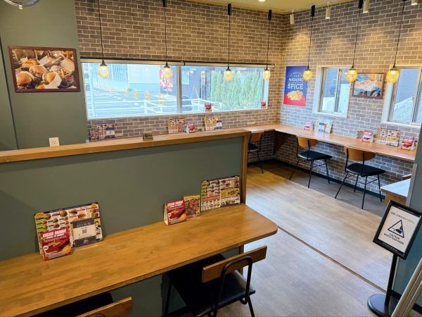 おしゃれなネイビーの外観にウッド調の内装。店内はカフェのように落ち着いた雰囲気で、テイクアウトはもちろん、