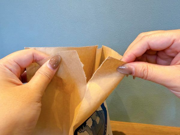 この袋をびりびりと破り、トレーのようにひいて食べるのが“マサジロウスタイル”です。テイクアウトして車内で食べる際なども便利そうですね。