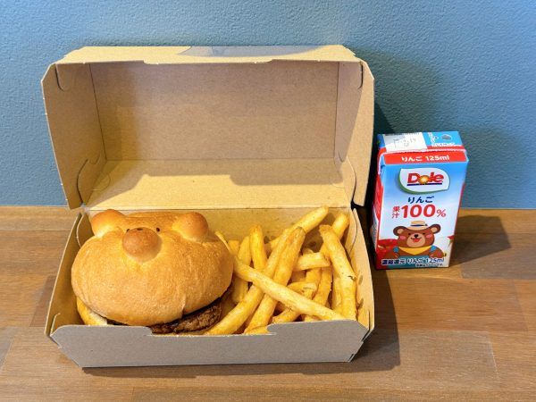 ファミリー層に嬉しい、キッズ向けのメニューが用意されています。かわいいくまさんのバンズが目を惹き、バーガーは小さめサイズながら、パティやバンズの品質はレギュラーメニューと同じ。お子さんの初めての“本格バーガー体験”にもぴったりです♪「キッズナゲットセット(720円)」もありますよ。店内にはお子さま用のイスもあるので、安心してイートインができます。