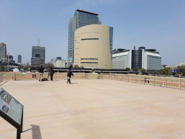 公園の南端にある小高い建造物は、聖武天皇が遷都を命じた後期難波宮時代の天皇の住まいである内裏正殿があった場所。こちらもARで当時の姿を見ることができます。ステージとして使えそうなぐらいの広さですが、今後の活用については未定とのことでした。大阪の歴史を礎にした難波宮跡公園と「なノにわ」に、今後も注目したいですね。
