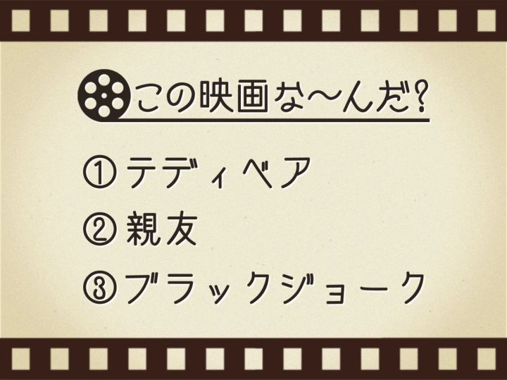 3. 【3つのヒントで映画を当てろ!】「テディベア・親友・ブラックジョーク」連想する名作は何でしょう?