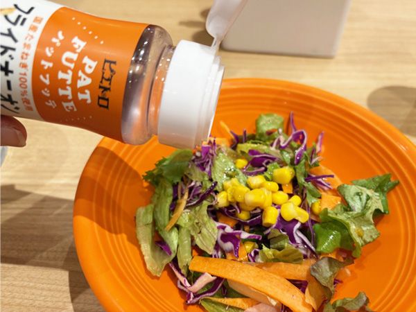 さらに卓上の「パットフッテ フライドオニオン&ナッツ」をパラパラとかければ、違った食感が加わってサラダが華やかに。
