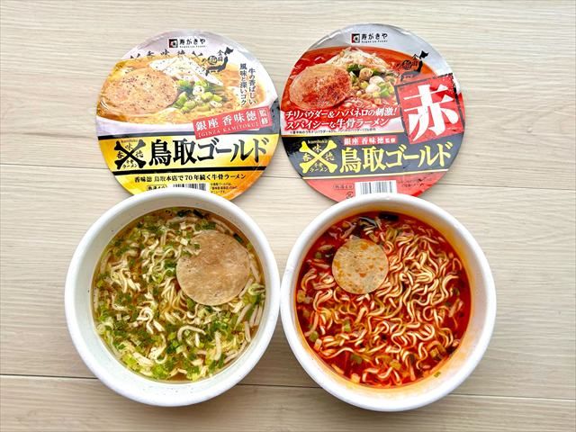 【ご当地カップ麺『鳥取ゴールド 牛骨ラーメン』食べ比べ】新発売の「赤」は辛い物好き必見!どこに売ってる?