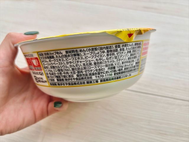 スープの原材料を見てみると、お肉のエキスのほかに“ビーフブイヨン”の文字が。なるほど、旨味はここからきているのか。お出汁みたいに飲めちゃいます。(にしても黒胡椒が効いている)
