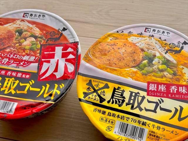 鳥取旅行のお土産としてもおすすめのご当地カップ麺を新作と食べ比べ! 少量の具材でシンプルなラーメン、麺とスープで直球勝負の『香味徳』。鳥取県中部で創業し、70年以上の歴史を誇る老舗です。今回は東京銀座にある『銀座 香味徳』監修のもと作られた、寿がきやのカップ麺「鳥取ゴールド 牛骨ラーメン」と、2025年3月10日(月)から新発売の「鳥取ゴールド 赤」を実食ルポでご紹介! スパイシーな「赤」には、辛い物好きの筆者も期待が高まります。