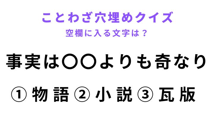【事実は〇〇よりも奇なり】空欄に文字を入れてことわざを完成させて!