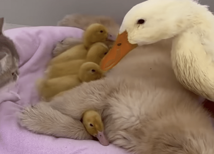 気持ちよさそうに眠っているアヒルのヒナたち。