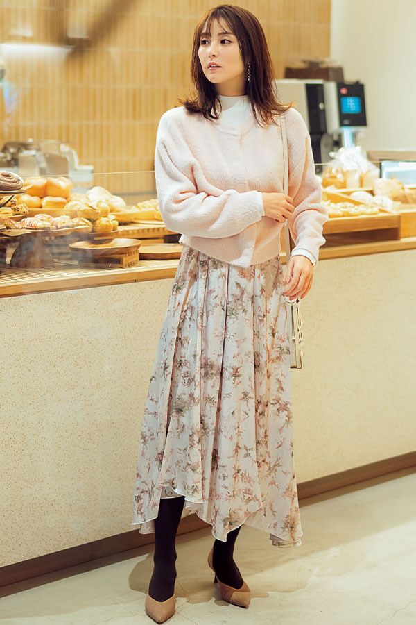 外はまだまだ寒い日も多いけど、気分は春めきたい♡1日の中でも寒暖差の大きいこの時季は、冬服にプラスワンでコーデが華やぐ「花柄スカート」がレディにとって絶好のスライドアイテム。 はやる気持ちと気温の両立を叶えてくれる相棒でいち早く春を呼び込んで♪