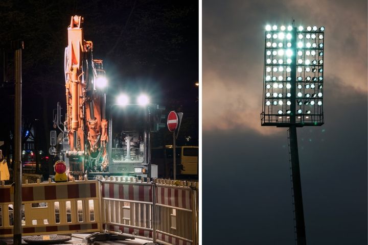 夜中の道路を車で走っていると、強烈な光の中で作業員たちが工事をしている姿を目にするかもしれません。