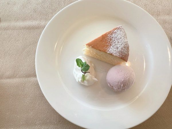 デザートのスフレチーズケーキは一晩寝かせたものだそうで、出来立てはふわふわですが一晩寝かせることでしっとりと滑らかな食感でした。味もしっかりとなじんで本当においしすぎました!!!ホールを一人で食べきれる自信があります(笑)そのくらいレストランの本格的なチーズケーキでした。これは間違いなくリピートですね。 苺のアイスクリームはこのセミフレンチコースのために作ってくださったそうで、チーズケーキとの相性抜群です。家庭では市販の苺アイスを代用することになりそうですが、こんな風に盛り付けしてしあわせなおやつタイムを楽しみたいです。