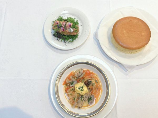 ・おつまみにもなるタラモサラダ ・真鯛と香味野菜の香り広がるブイヤベース ・スフレチーズケーキ