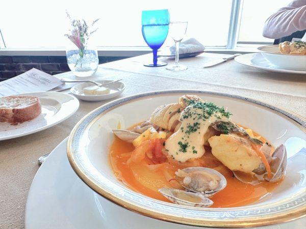 鮮魚のクリームスープは、ブイヤベースで使用した真鯛に合わせた一品なのでしょう。お魚の旨味がしっかりと楽しめて、サフランの香りと風味がとってもおいしい!