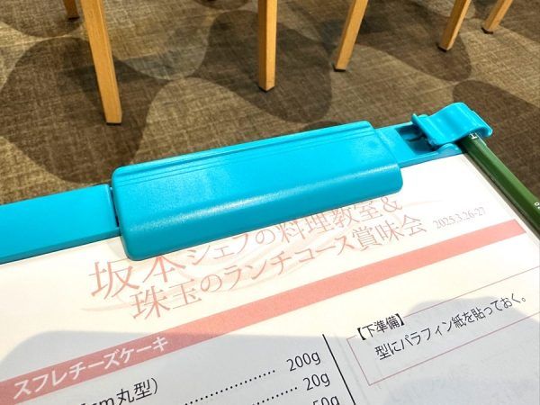 こちらはスフレチーズケーキをレクチャーしているときの写真ですが、スフレチーズケーキはふくらみや食感などコツが必要で難しいデザートなので、自分で作るのは難しいと思っていました。でも「誰が作っても失敗しない配合にしているので、ぜひ自宅で作ってみてください」と坂本シェフ。 各家庭の調理環境の違いなども配慮しながらできるだけ簡単に、工程を少なくしながらプロの味を再現できるようにと何度も何度も試作し、配合を調整して作り上げたオリジナルレシピ。シェフの優しさを感じます。