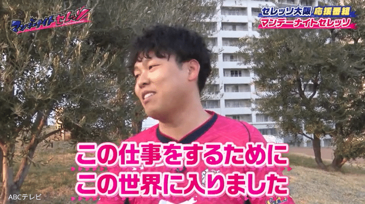さっそくユニフォームを着てみた大東だが、4XLサイズなのにピッチピチなため、「XLも無いこれ!」「(体感的には)これMや!」と苦笑い。彼の腹を東は指さしながら、「お前4XLでこれ……恥ずかしいねん!」「こんなデカい奴が着ると思ってないから!」などとツッコみスタッフの笑いを誘った。