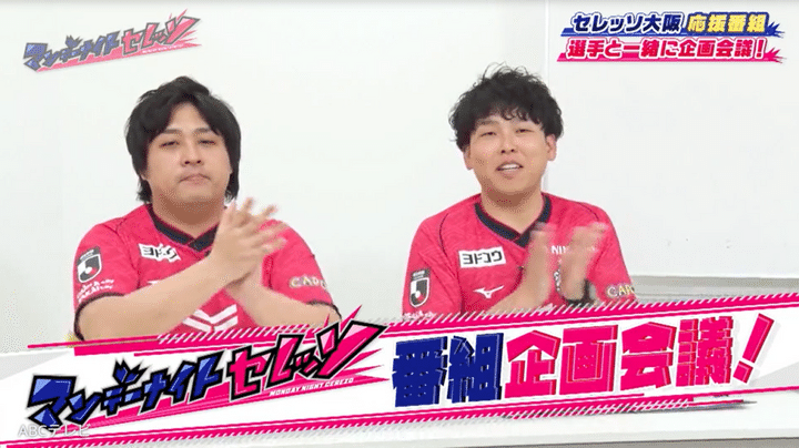 『マンデーナイト セレッソ』のMCを務めるお笑いコンビとは、大阪出身のダブルヒガシ。東良介はセレッソ大阪の大ファンなため、MCに抜擢されて特に大喜び。1人だけ私物のユニフォームを着て気合十分で、「マジで嬉しい!」「この仕事をするために、この世界に入りました!」「これちょっとヤバいな!」などとハイテンションだ。