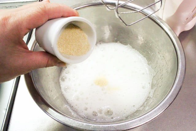 また、志麻さんは2回に分けて砂糖を加えていましたが、筆者は3回に分けて砂糖を加えることに。