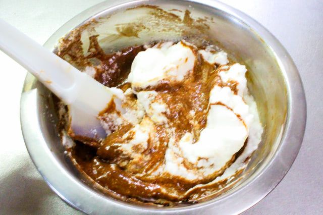 4. 1に卵黄を加えて、しっかりと混ぜます。
