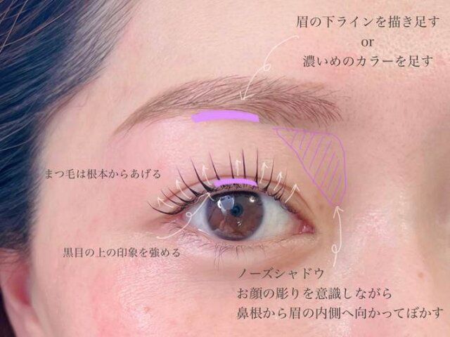 目と眉毛を近づける場合