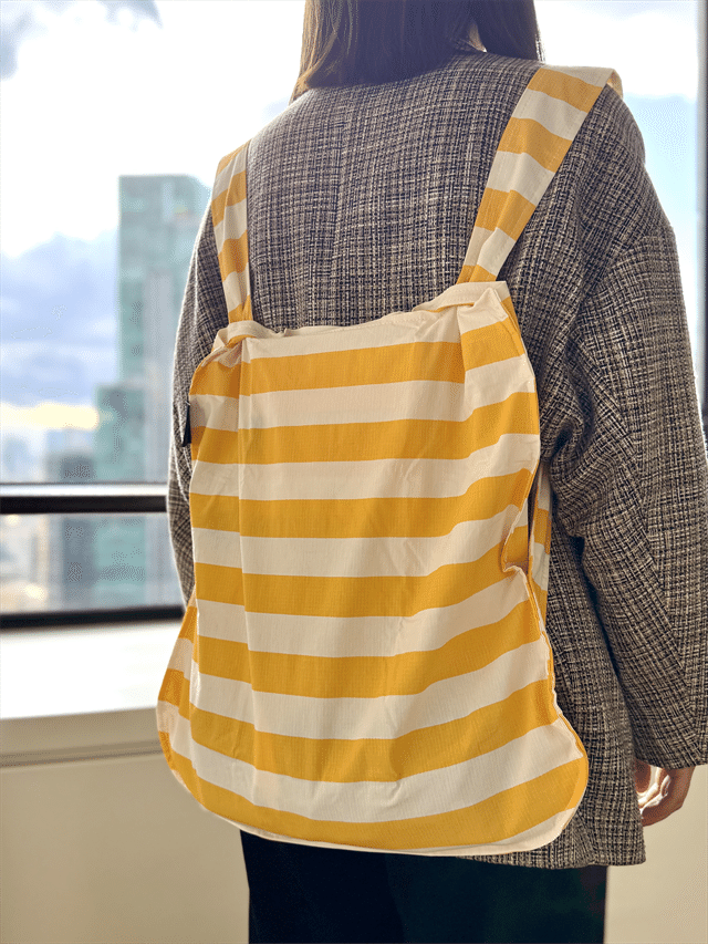 買い物したものを入れるエコバッグとして、自転車に乗るときは背負ったほうが楽なのでリュックサックに……というように、使う人がシーンに合わせてトートバッグ・リュックサックと使い分けられるのはとても便利です。