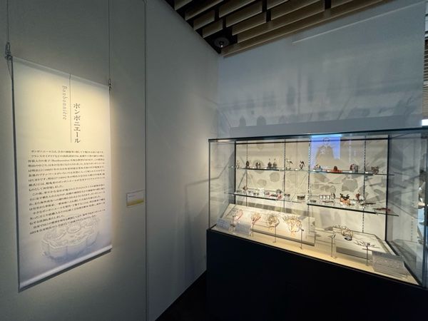 会場入口にはボンボニエールが展示されています。ボンボニエールとは、フランス語で「ボンボン(砂糖菓子)」を入れる小箱を意味する言葉で、皇室の慶事の際に配られる引き出物として知られています。