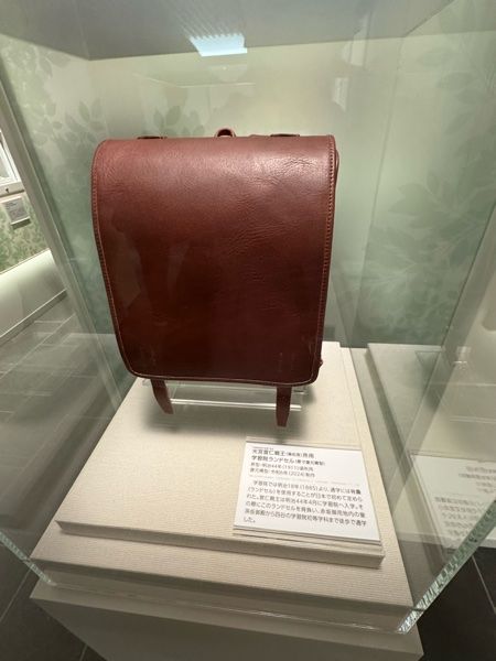 日本で初めてランドセルを使用したのは、学習院初等科の生徒たちで、明治18年(1885年)に導入されました。画像は光宮宣仁(てるのみやのぶひと)親王(高松宮)所用学習院ランドセル(原寸復元模型)です。