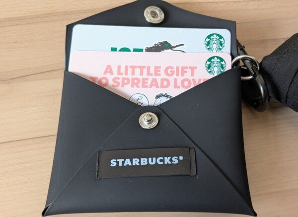 スターバックスコーヒーでは便利なエコバッグも大人気! 表面に撥水加工を施したバッグにカードケースが付いています。