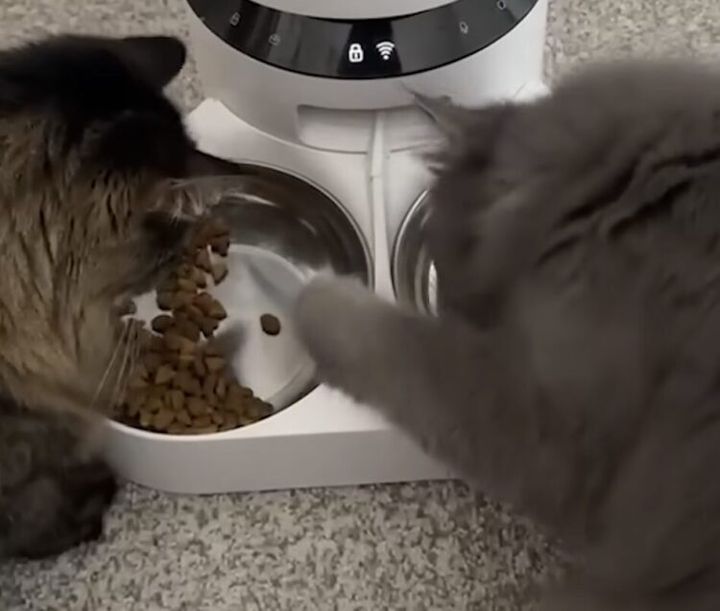 2つのお皿が並んだ便利な自動給餌器。