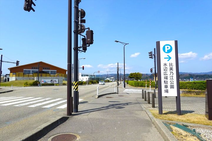 展望台がある比美乃江公園は、JR氷見線「氷見駅」から徒歩で約20分ほどの場所に位置しています。車でアクセスするには国道160号線から「道の駅 氷見」を目指せば周辺に到着できますよ。