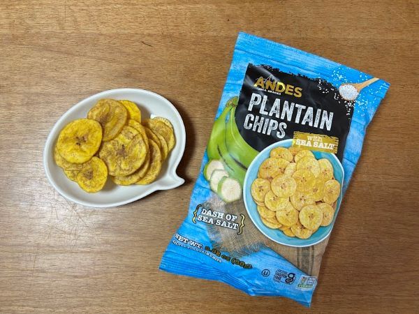調理用のバナナ「プランテン」をカットして揚げたサクサクチップス。甘いバナナチップスを想像して食べると「ええ!?」ってなります(笑)。