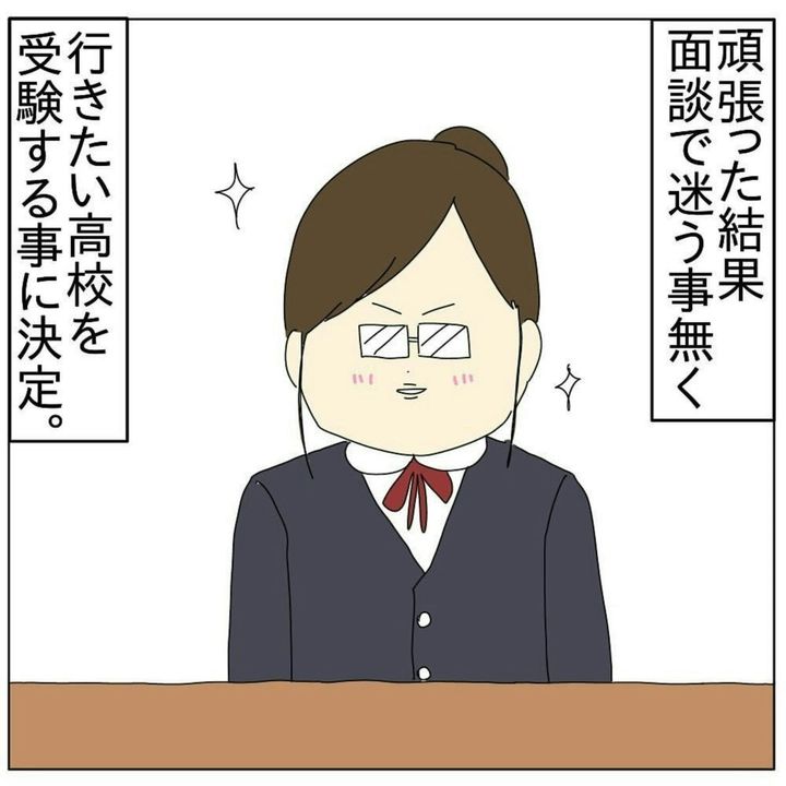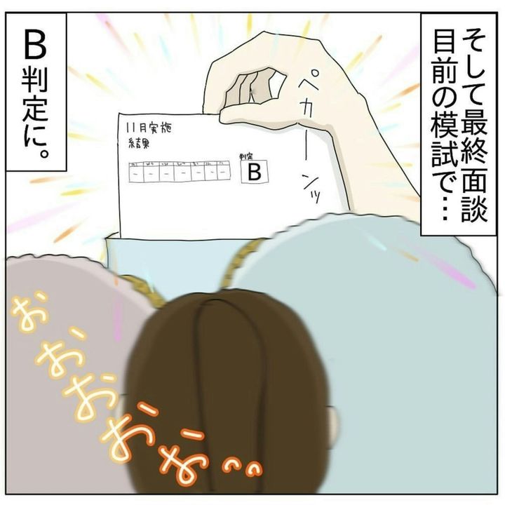 勉強の成果が出始め、D判定からB判定へと成績がアップします!三者面談で自信を持って「桃栗高校を受験します」と言えたリコさん。本当にがんばりましたね。