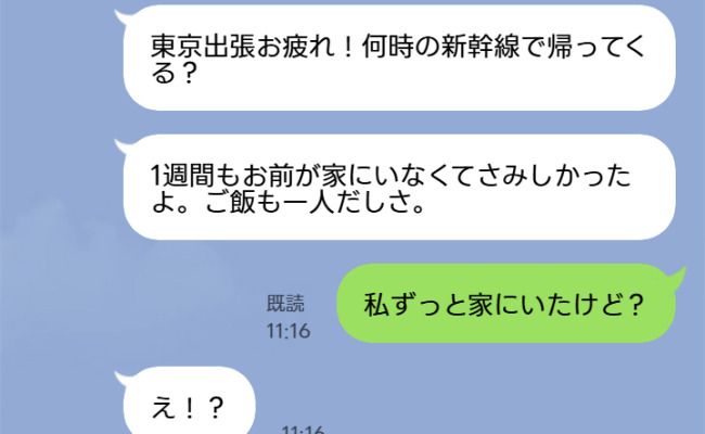 1週間の東京出張に来た私は、取引先の社長さんの体調不良を受けてそのまま引き返すことに。その旨を夫に連絡したうえで新幹線で帰宅したのですが、家に夫の姿はなかったのです……。