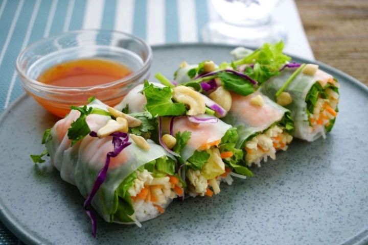 エスニックな味わいを楽しむ「海老と蒸鶏の生春巻き」