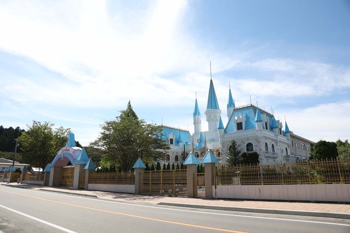 「リカちゃんキャッスル(りかちゃんきゃっする)」があるのは福島県中通り中部に位置する小野町。車を走らせていると、白と水色のパステルカラーが印象的な西洋風のお城が見えてきます。ここはリカちゃん人形を作る工程を見学できる日本で唯一のお城で、ほかにもドレスをレンタルして記念撮影を楽しんだり、自分だけのリカちゃん人形を作ったりすることができます。