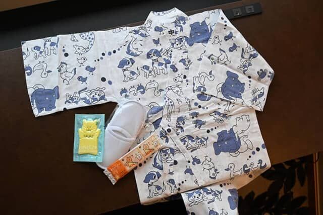 パジャマやスリッパのほか、ムササビの形をしたボディースポンジや、可愛らしいむささびくん歯ブラシなど。