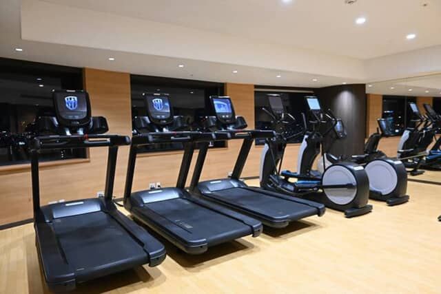 宿泊者が無料で使えるフィットネスルームも用意します。トレッドミルやフィットネスバイク、エリプティカルクロストレーナーのほか、バランスボールやヨガマット、ダンベルなどをそろえます。