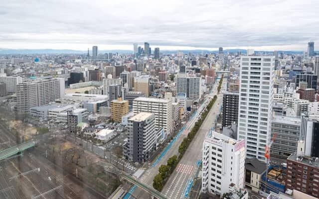 ▲街側の眺望。写真中央の高層ビル群が名古屋駅周辺