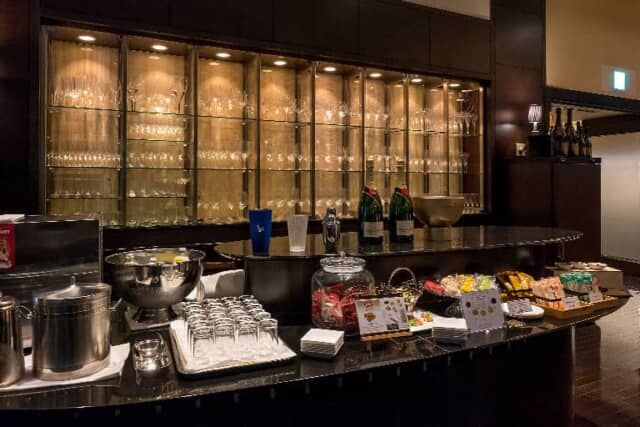 25階以上の客室を予約したゲストが利用できるラウンジでは、ドリンクや “ご当地おつまみ” などを自由に楽しめます。ファーストドリンクのみですが、無料のモエ・エ・シャンドンが飲めるのも魅力です(2杯目からは有料)。