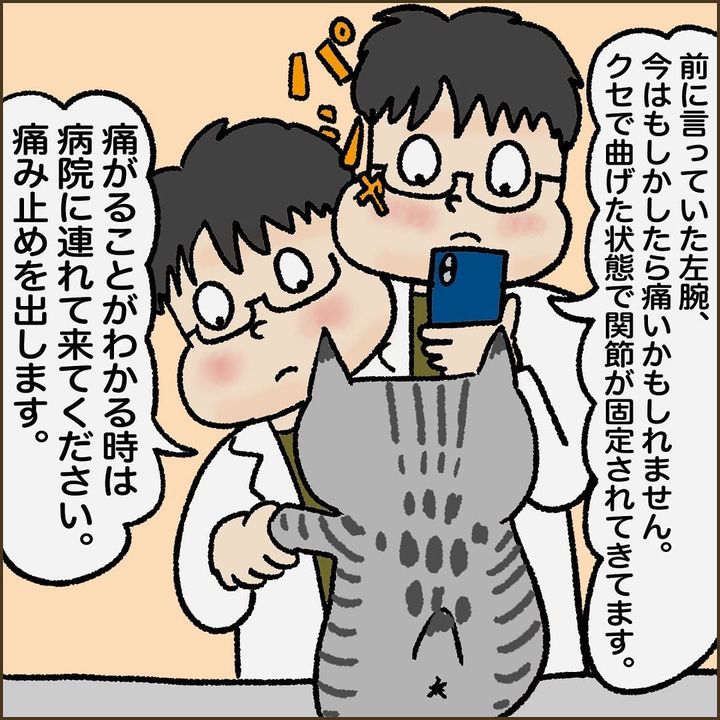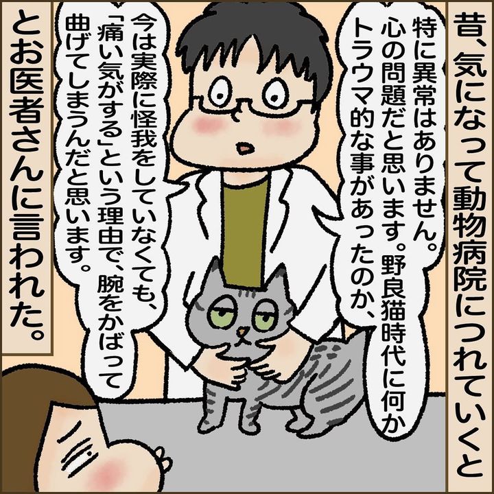 2. 左腕を曲げる変なクセがあるネコ→病院へ連れていくと、発覚した事実に「一緒に頑張っていこう」