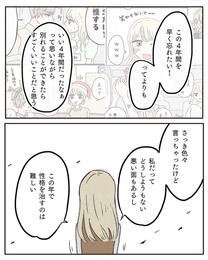 「いい4年間だったなぁって思いながら別れることができたらすごくいいことだと思う」と、別れを前向きに捉えようとする野花このんさんが素敵です。2人の将来を考えた、野花このんさんの建設的な判断なのでしょう。