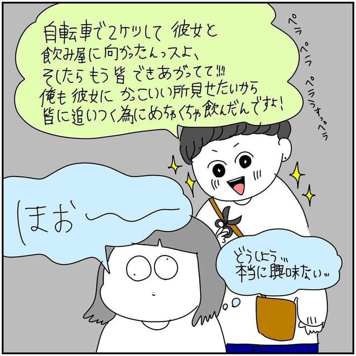 興味のない話を延々とされ、「DAKARA NAN YANEN」とツッコむたまちゃんさんの描写が面白く、思わず吹き出してしまいました。学生時代の“武勇伝”を語りたがる人は意外と多いですが、それを接客中にされるのは我慢なりません。