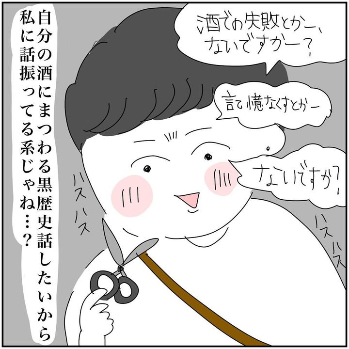 美容院で、美容師が学生時代の失敗談を語り始めます。心の中では辟易しながらも、興味を持って話を聞いているようにリアクションをして、その場をやり過ごすのでした。